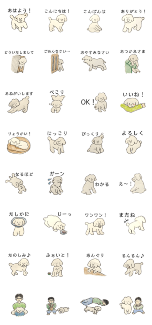 白いトイプードルのゆる〜いスタンプ スタンプ画像一覧