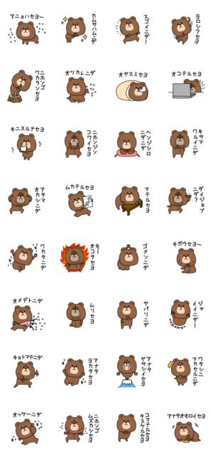 毎日ブラウン偽韓国語 スタンプ画像一覧