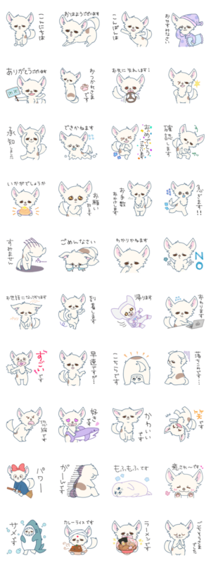敬語のスタンプです。 チワワのちいちゃんでかわいく返信♡まふまる! より発売