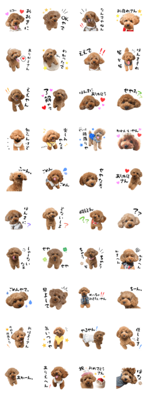 関西弁で使いやすくておもろいトイプードルのスタンプやで~!日常会話でよく使うセリフを集めてみたし、よかったら使ってや~!