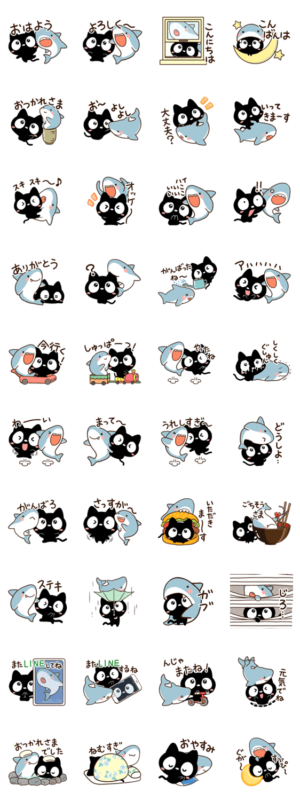 クロネコすたんぷとちびサメ スタンプ画像一覧