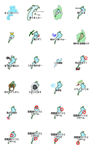 琵琶湖や滋賀県をモチーフにしたスタンプです #琵琶湖 #滋賀 #ご当地 #シュールおむ&らいす より発売