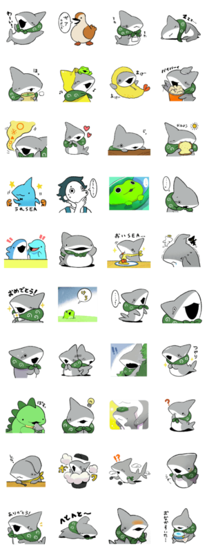 とにかくほっこりする子ザメさんのスタンプ。絵のタッチが明るく、全体的にポジティブなスタンプが多いので使いやすい