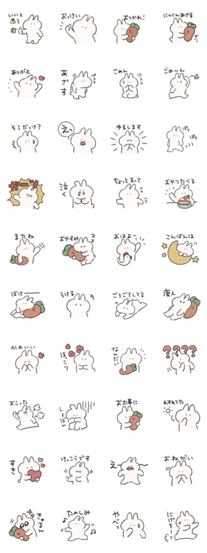 ほんわかゆるいうさぎのスタンプです。かわいい/シンプル/使いやすい/あいさつ/ウサギタヌキ シオリ より発売