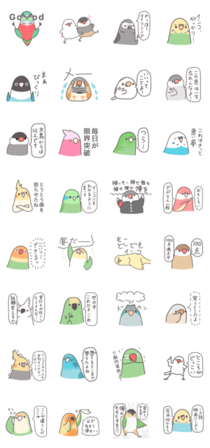 まずメイン画像の、「インコとオウムの区別もつかないくせに・・・!」に惹かれてしまいました。鳥好きの人の心をくすぐるスタンプです。
