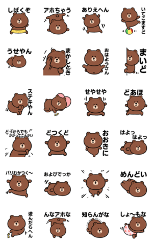 LINEキャラのブラウンとコラボ!関西弁でウザく煽ってくれます☆ともだち、くま、ネタ、連絡、面白い、動く、使える、毒舌、シュール、かわいい、関西弁、シンプル 、大人 ※BROWN & FRIENDS をみんなでつくろう!キャンペーン参加スタンプですしろくじら+し より発売