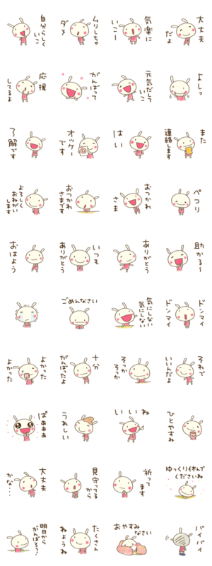 どちらかというと自信のないうさぎ。「大丈夫だよ」「気楽にいこー」から「それでいいんだよ」まで。身近な人へ、さりげなく心温まるメッセージを届けよう。Mami / エストループ より発売