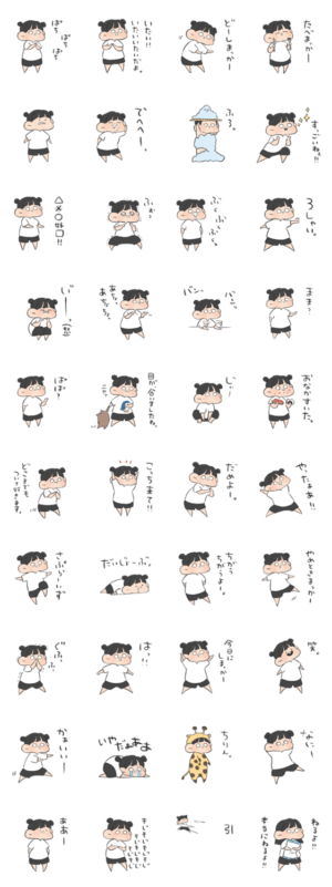 3歳児みたいな女の子スタンプです。ぐで太郎。 より発売
