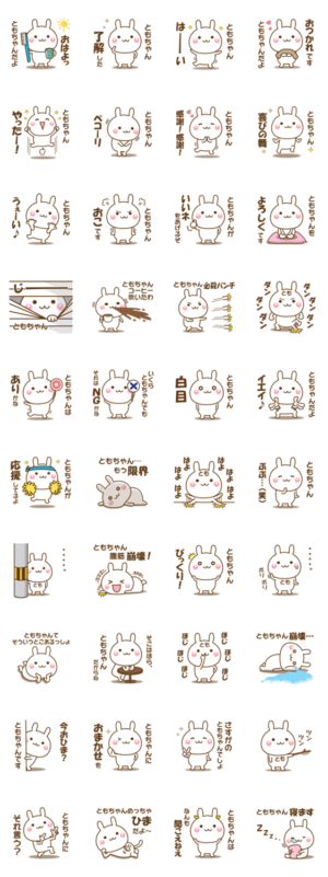 ともこ,ともみ,ともえ,ともよ,ともな,ともか,ともき,ともや,ともゆき,ともたか,ともひろ,ともあき,とものりさんなど、全国のともちゃんのためのスタンプ。