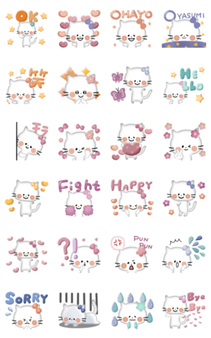 ちびねこがぷっくりしました。色んな動きやしぐさの可愛い背景が動くスタンプです。