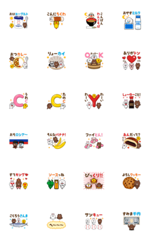 ブラウン/コニー/サリー/ムーン/レナード/パンヨ/LINEキャラクターズ/毎日使える/日常会話/挨拶/大人向け/ダジャレ/オヤジギャグ/駄洒落/カップル/ただのぶたさん出演 ※BROWN & FRIENDS をみんなでつくろう!キャンペーン参加スタンプです4A-Studio(よんえーすたじお) より発売