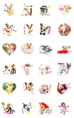 チワワの茶々のスタンプの第3弾です♡よかったら使ってくださいpeco より発売