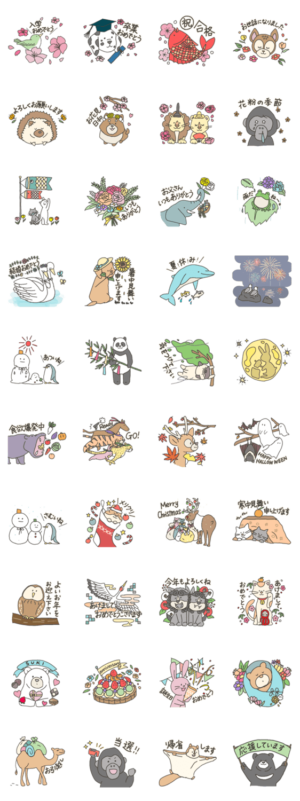 春夏秋冬のイベントに使えるどうぶつたちのスタンプです。出番は少ないかもですが使いたくなるはずです。fujinaga より発売