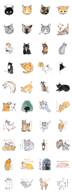 水彩画みたいな優しいタッチでおしゃれなスタンプ!猫ちゃんかわいい