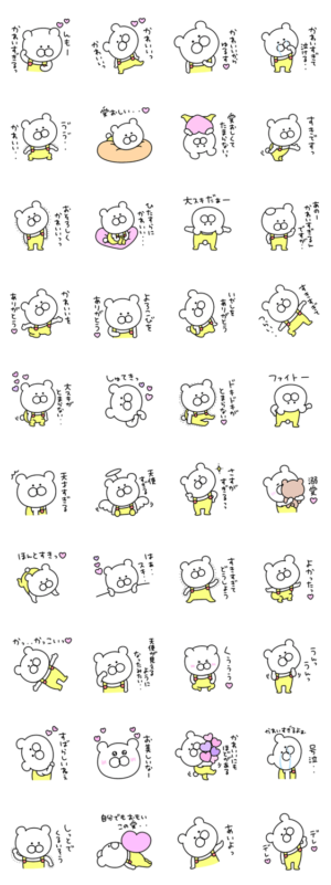 オーバーオールを着たクマの溺愛スタンプです。eribo より発売