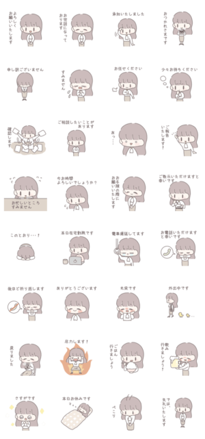 働く女性が使いやすい敬語のスタンプです。関連用語:上司/部下/会社/会社員/顧客/社会人/OL/かわいい/仕事/会話/営業/職場