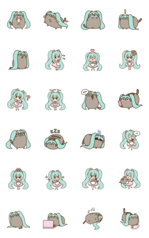 アメリカで誕生した猫のキャラクター「Pusheen」と初音ミクのコラボスタンプが登場!キュートでポップなスタンプです♪