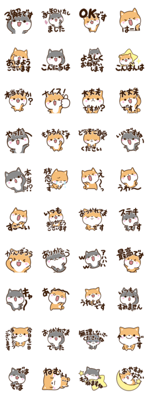 『ちびシバ』と『ちびクロシバ』の丁寧な言葉や敬語を集めた、選びやすい、ドアップ柴犬スタンプです。コーギーや秋田犬等の、いぬ好きな方にもぜひ。【かたこ】かたこ より発売