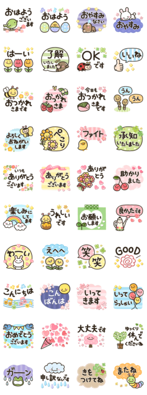 カラフルな色使いと、使いやすいメッセージが多くて、良いと思います。