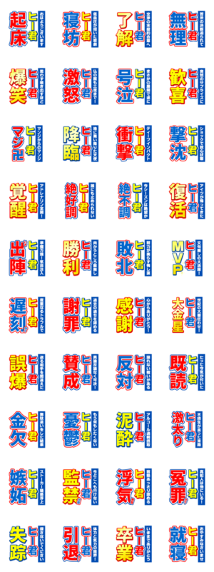 自分の名前がスポーツ新聞の見出しに載ったら面白いと思いませんか?そんな夢を叶えた名前スタンプ(ヒー君)です!ひーくん,ひろし,ひろと,ひさし,ひかる,ひろゆき,ひろあきくーが より発売
