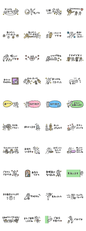シュッとスリムな猫たちの敬語スタンプ。トークが見やすい半分サイズのシンプルスタンプです!