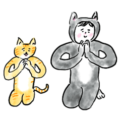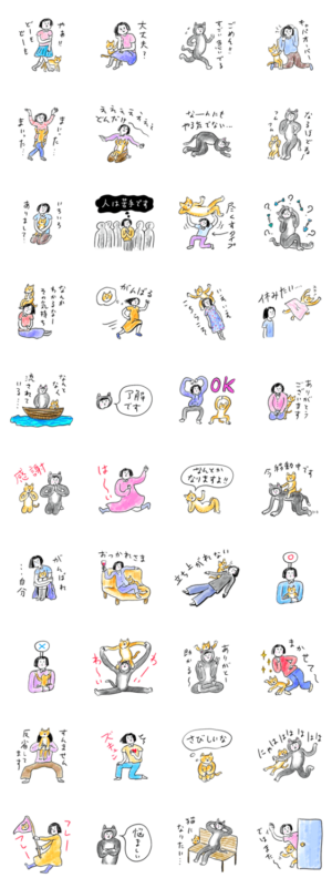 ちょっと疲れ気味な私とのんびりネコちゃんのスタンプです。お疲れ様。頑張りすぎたら休みましょ。自分に送る自分のためのスタンプとしても。イッレ・コスヤ より発売