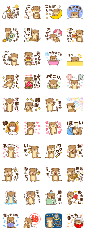 日常で毎日繰り返し使いやすい言葉をシンプルにかわいいカワウソで表現。優しい&丁寧な言葉なので、家族や友達、恋人、彼氏彼女、職場、学校など、色々な相手に使えます。