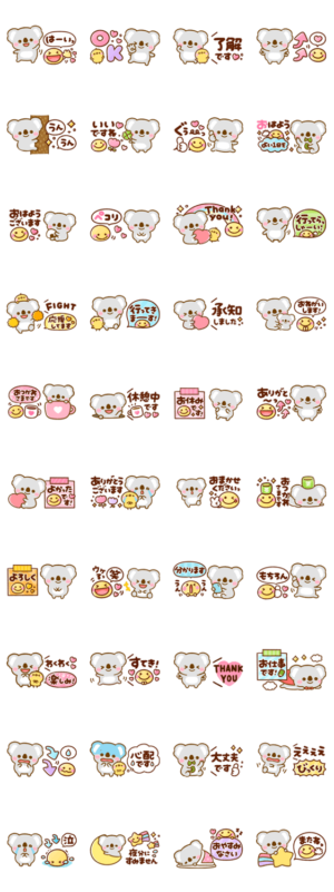 かわいらしいコアラと汎用性あるメッセージのスタンプ。人によっては少し文字が小さく感じるかもしれないが、それを差し引いても全体的に完成度は高い。コアラが嫌いだという人も少数派だろうからおおよそいつでも安心して使うことができるだろう。
