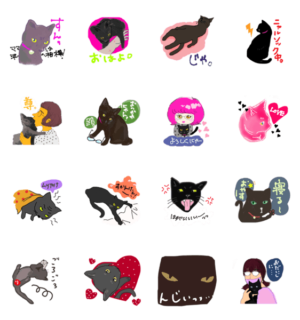 黒猫のんちゃんのオリジナルイラストスタンプです。animaltalk_spica より発売