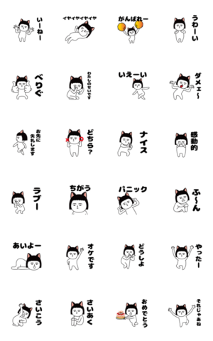 いつもの面白スタンプ。猫・ネコの耳をつけてかわいく仕上がっております。hitta より発売