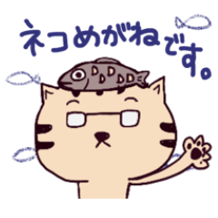 お魚大好きなネコめがねさんのスタンプです。サカナ子 より発売