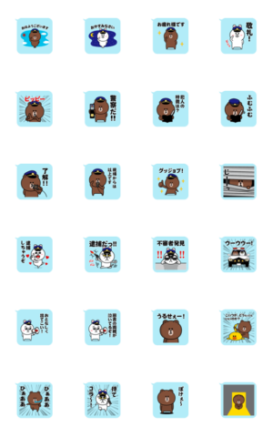 ブラウン/コニー/サリー/LINEキャラクターズ/警察/警官/ポリスメン/刑事/お巡りさん/交番/取り調べ/逮捕/パトカー/手錠/毎日使える/挨拶/便利/ポップアップ/飛び出す ※BROWN & FRIENDS をみんなでつくろう!キャンペーン参加スタンプです4A-Studio(よんえーすたじお) より発売