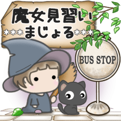 魔女見習い まじょると黒ねこが楽しく飛びだすスタンプです。
