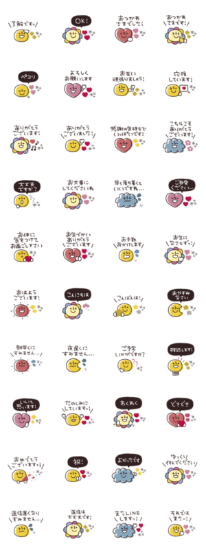 気持ちを伝える、1つあると便利な省スペーススタンプです。シンプル/かわいい/大人可愛い/くすみ/毎日使える/ふんわり/ゆる/吹き出し/スマイル/あいさつ/敬語
