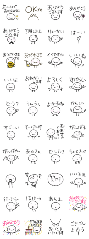 シンプルなスタンプ。ゆるい敬語も。 家族、友人、器の大きい先輩に使えます。Ovee より発売
