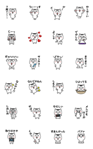 やさぐれねこのニャンゴロスのアニメーションスタンプです。口が悪く汚い言葉や関西弁を使う猫。芋ジャージの名前スタンプの『くーが』作くーが より発売