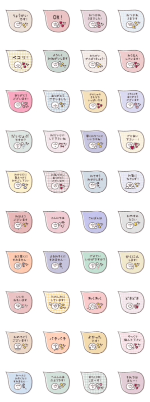 気持ちを伝える、1つあると便利な省スペーススタンプです。シンプル/かわいい/大人可愛い/くすみ/毎日使える/ふんわり/ゆる/吹き出し/スマイル/あいさつ/敬語