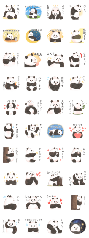 ふわふわのパンダさんのスタンプの第2弾です。 敬語からタメ語まで。ぱんくろう より発売