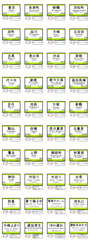 山手線 いまこの駅だよ!たれ耳タレミー スタンプ画像一覧