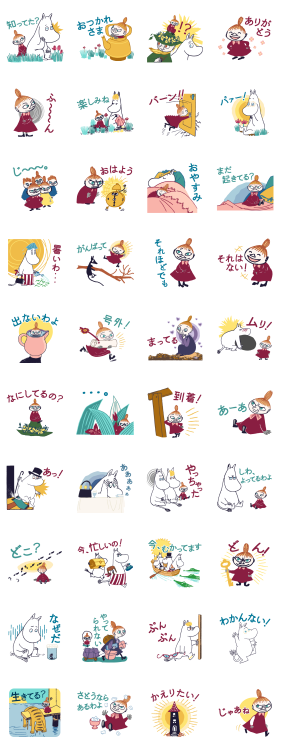 勇敢で怖いもの知らずなリトルミイを中心に、ムーミン谷の仲間たちが、あなたに代わって可愛く本音を伝えてくれるスタンプ。日常会話で定番のスタンプも入って使いやすい!