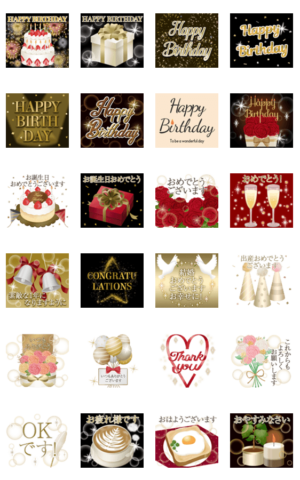 キラキラ豪華&大人ロマンチックなお祝いスタンプ。HAPPY BIRTHDAY/おめでとう/ありがとう