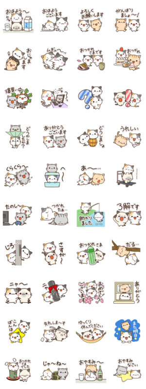 『ちびミケ』の三毛猫と、アメショや、トラネコとのペアスタンプです。丁寧な言葉や、敬語、よく使うあいさつを集めた便利なスタンプです。ねこ好きな方にぜひ。【かたこ】かたこ より発売