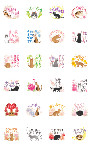 毎日使える!大人可愛い和猫たち 敬語編 スタンプ画像一覧