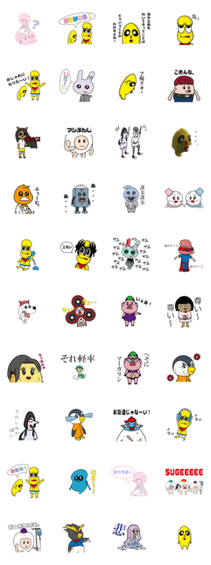 シュールなキャラのスタンプです。良いですね!40種類ダウンロードできるのは良いですね!