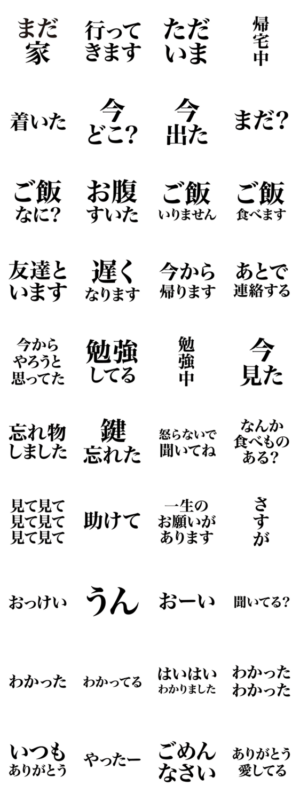子から親へ使えそうな文字のみスタンプ スタンプ情報