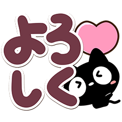『クロネコすたんぷ』のデカ太い文字のスタンプ。大きく選びやすい文字と黒猫が、かわいく返事をします。よく使う言葉等、便利なくろねこスタンプです。【かたこ】