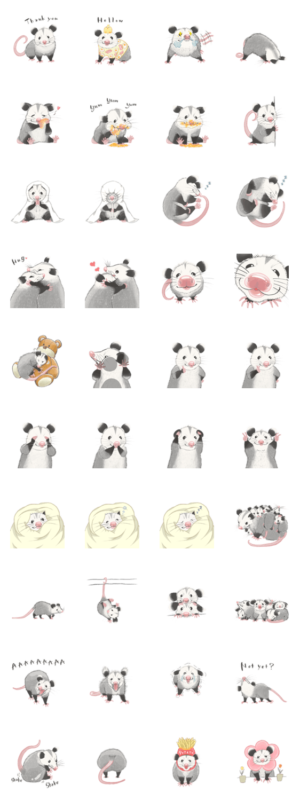 キタオポッサムのおぽさんスタンプです (海外の方向けに英語版となっております)monawo より発売