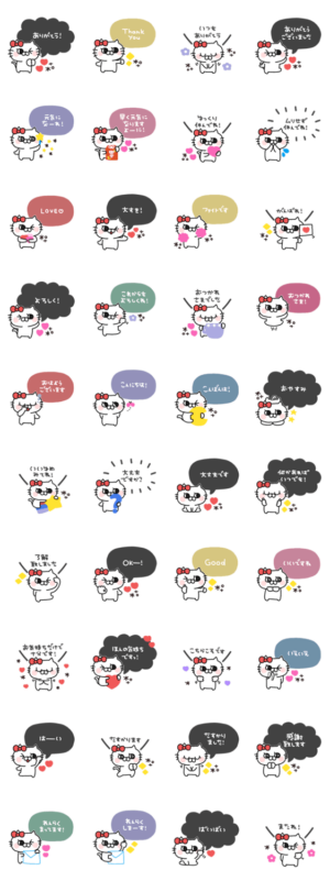 にゃんこりぼん◎あいさつ吹き出し #1 スタンプ画像一覧