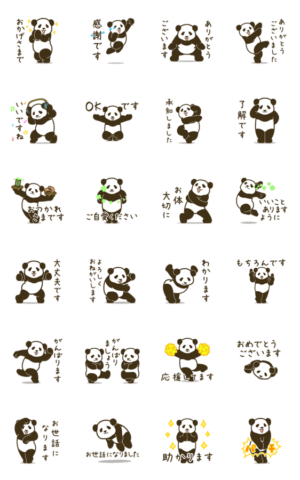 元気に動くパンダの使いやすい敬語スタンプです!ブルースブルース より発売