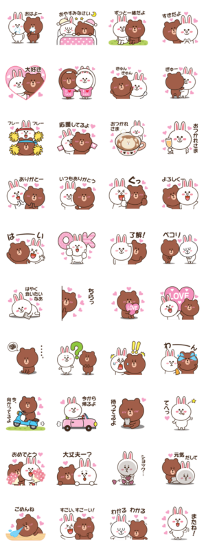 コニー&ブラウンのラブラブスタンプの第四弾です♪恋人や友達に大好きな気持ちを表現しましょう♪